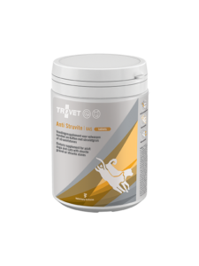 Anti Struvite to suplement diety dla dorosłych psów, który zapobiega i leczy kamienie struwitowe oraz piasek struwitowy. Anti Struvite obniża pH moczu, tworząc mniej sprzyjające środowisko do powstawania struwitu. Suplement jest hipoalergiczny i może być stosowany razem z dietą hipoalergiczną w przypadku nadwrażliwości pokarmowej.