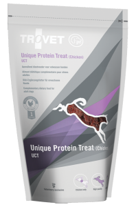 Chcesz nagrodzić swojego psa, gdy wymaga diety? W większości przypadków jest to możliwe. Unique Protein Treats zawierają jedno źródło białka oraz skrobię ryżową jako jedyne źródło węglowodanów. Są idealne dla psów z (możliwą) alergią pokarmową, obok hipoalergicznej diety opartej na tym samym źródle białka. Przysmak można również stosować u zdrowych dorosłych psów.